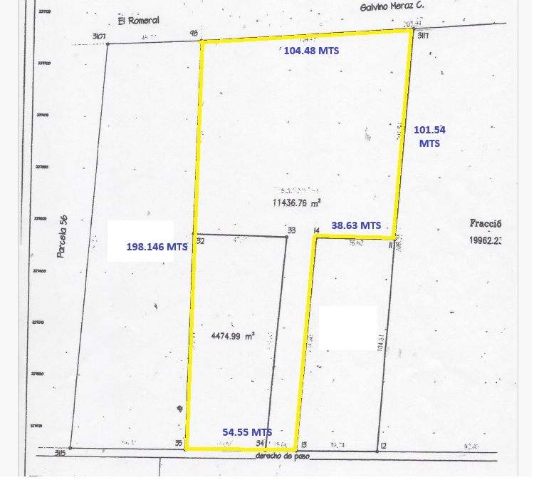 Frente de 54.55 metros sobre calle